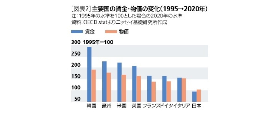 [図表2]主要国の賃金・物価の変化(1995→2020年)