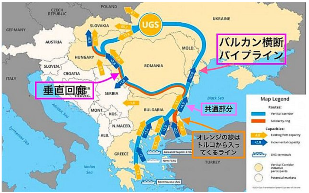 ウクライナ企業DTEKは公式ホームページで、ギリシャのアテネ近郊にあるレヴィソーサLNGターミナルなどで再ガス化されたあと、ギリシャ、ブルガリア、ルーマニア、ハンガリー、スロバキア、モルドバ、ウクライナの間でガスを輸送する垂直回廊イニシアチブなどの国境を越えたパイプラインを使用するだろうと述べている。 参照記事