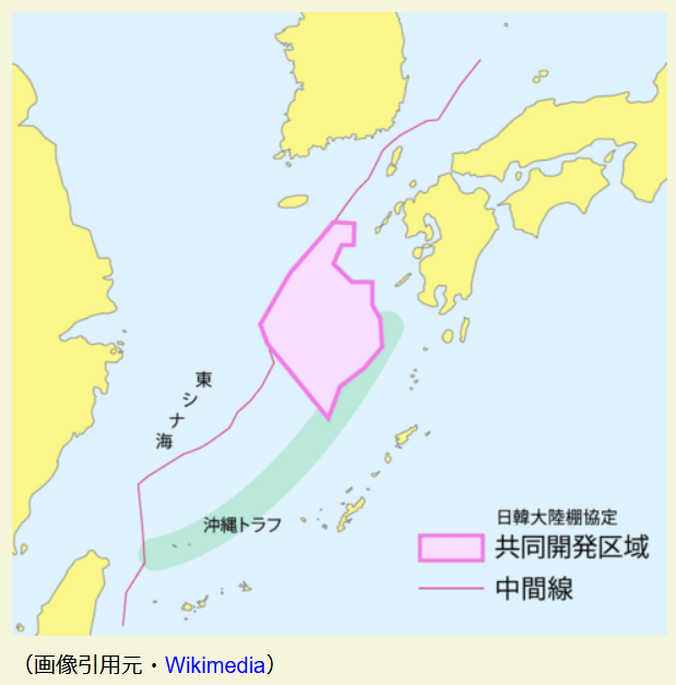 大陸棚に基づく主張をめぐって。[1]両国間の正中線の国境を支持するこの概念は、JDZ が日本の EEZとなる範囲の 90% 以上を占める [1] ため、協定が終了した場合には日本にとって大きな利益となるだろう[ 1]。