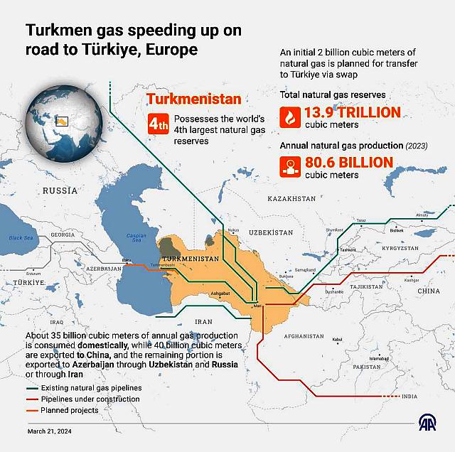 トルコは最近、ロシア産ガスの買い入れを減少させる意向を表明し、2024年3月、トルクメニスタンと天然ガス分野での協力と炭化水素分野でのパートナーシップに関する覚書に署名した。