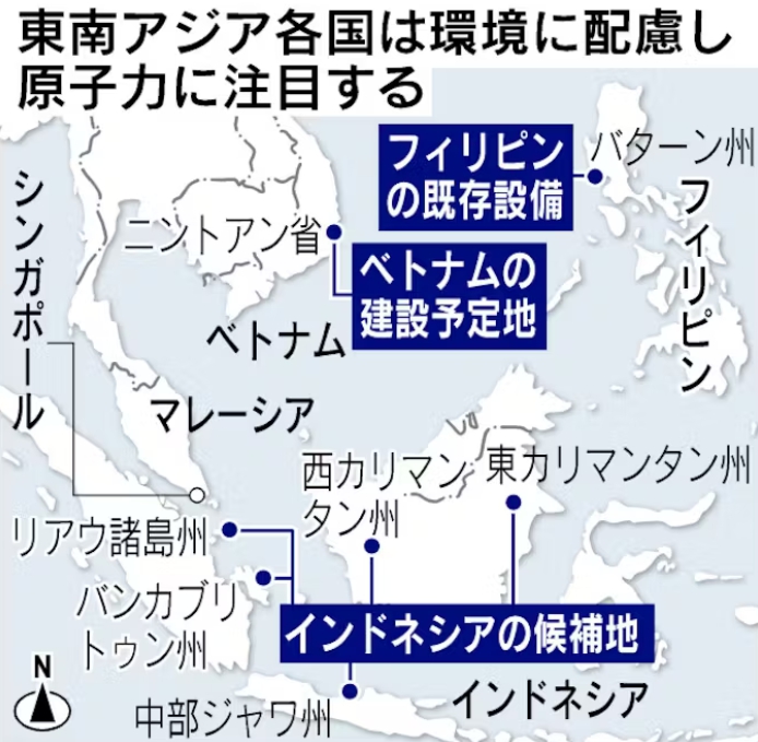 先行するベトナムは20年の稼働に向け200万キロワットの第1期工事をロシア国営企業に発注し、2期工事も予定する。北部バターン州で1984年に完成したものの、欠陥が多いため稼働しないままになっている設備を持つフィリピンは、韓国電力公社に軽水炉部品の購入を打診。タイは中国企業から技術提供を受ける覚書に署名し、シンガポールは2月公表の中長期経済戦略で初めて原発建設の可能性を示した。