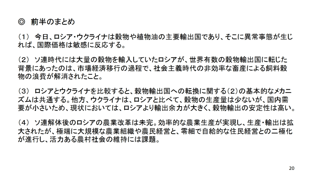日本は世界有数の小麦輸入国です。ですが市民感覚としては、政府の価格統制のもとに世界の小麦市場の変動をあまり肌身で感じることはありません。ところが、世界の小麦市場は大きく変化してきており、ときには世界の政情不安の源ともなってきました。日本でおいしいパンやパスタを食べ続けられるようにするためにも、気候変動や小麦のサステナビリティに向けた取組が欠かせなくなっています。