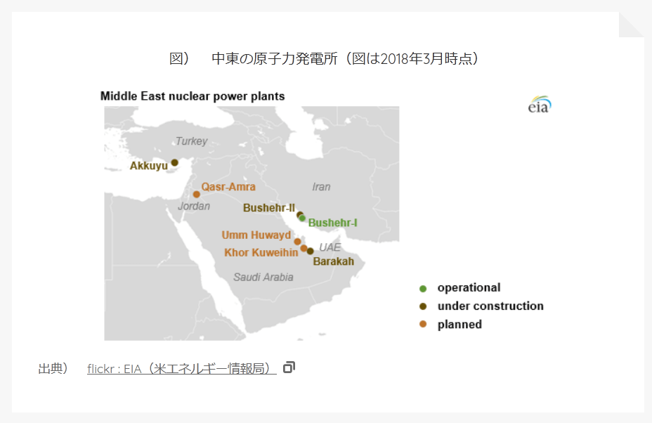 図) 中東の原子力発電所(図は2018年3月時点)