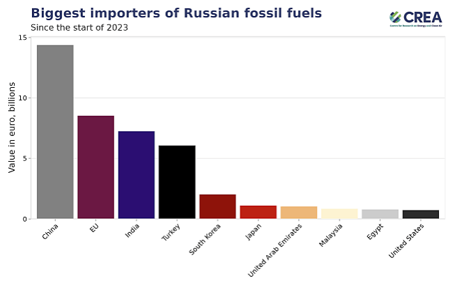 2023年4月20日:フィンランドの研究機関「エネルギー・クリーンエア研究センター(CREA: Centre for Research on Energy and Clean Air)」が4月18日に発表した報告書で、ウクライナ侵攻をきっかけに5カ国がロシアから原油の輸入を増やし、ロシア産石油に制裁措置を取っている国々に販売する製品向けにその原油を精製しているという。