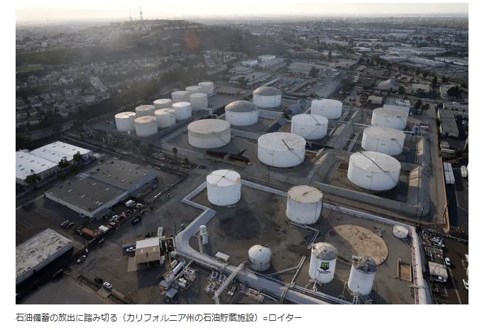 石油備蓄の放出は自然災害などで供給に支障が生じた緊急時に、国際エネルギー機関(IEA)が呼びかける形などで実施してきた。価格を抑えるために実施するのは異例だ。IEA加盟国が協調して石油備蓄を放出したのは2011年が最後だった。当時は中東の民主化運動「アラブの春」でリビアの石油生産が滞った。