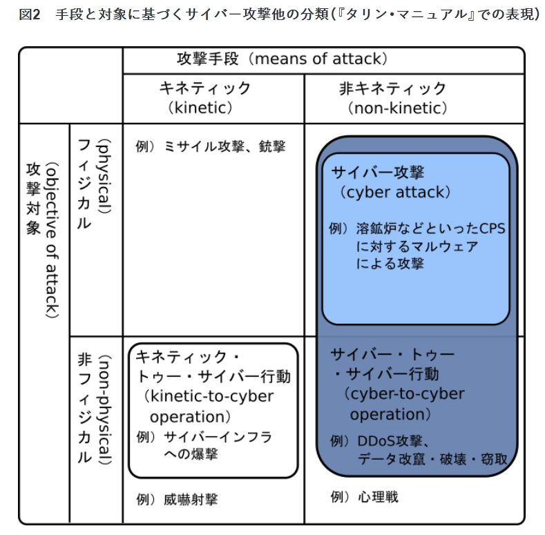 図2 手段と対象に基づくサイバー攻撃他の分類(『タリン・マニュアル』での表現)