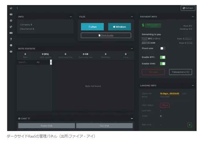 利用者は、RaaSが用意する管理パネルから様々な機能を利用できる。身代金の支払先もRaaSが用意する。このため身代金の支払い状況も管理パネルで確認できる。至れり尽くせりといえるだろう。