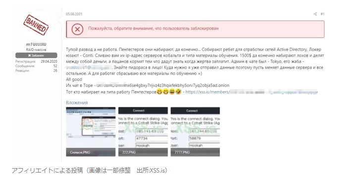 アフィリエイトによる投稿(画像は一部修整 出所:XSS.is)