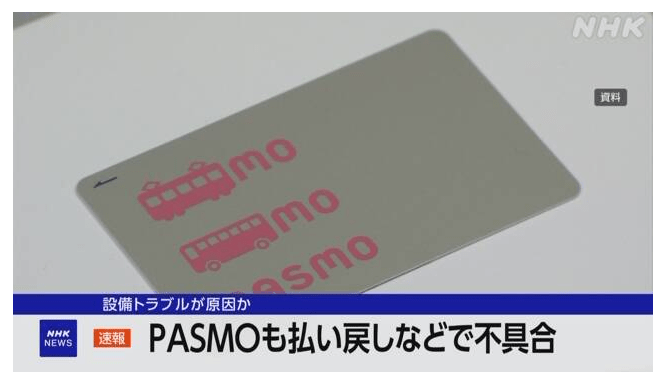 首都圏の私鉄などでつくる協議会によりますと、24日午前0時半ごろから、駅の改札で運賃を支払うICカードの「PASMO」で、駅の窓口で残高の払い戻しや再発行ができない不具合が起きているということです。