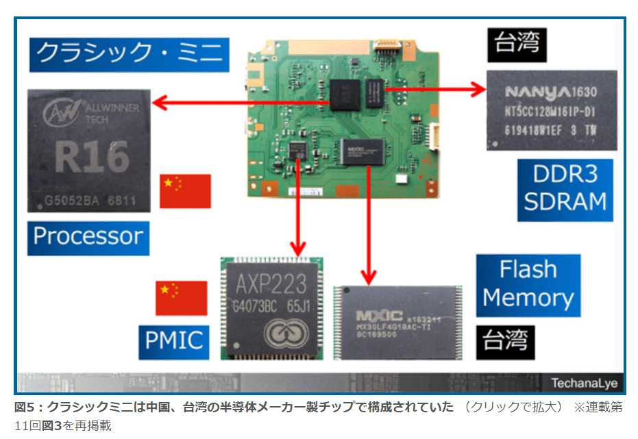 図5:クラシックミニは中国、台湾の半導体メーカー製チップで構成されていた (クリックで拡大) ※連載第11回図3を再掲載