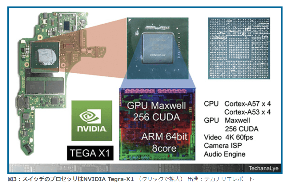 図3:スイッチのプロセッサはNVIDIA Tegra-X1 (クリックで拡大) 出典:テカナリエレポート