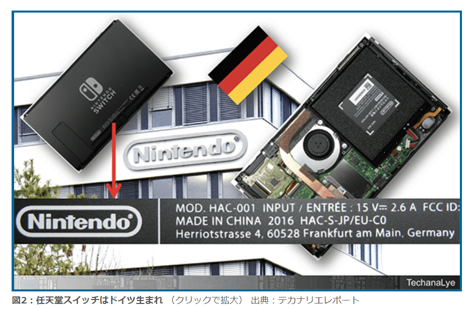 図2:任天堂スイッチはドイツ生まれ (クリックで拡大) 出典:テカナリエレポート