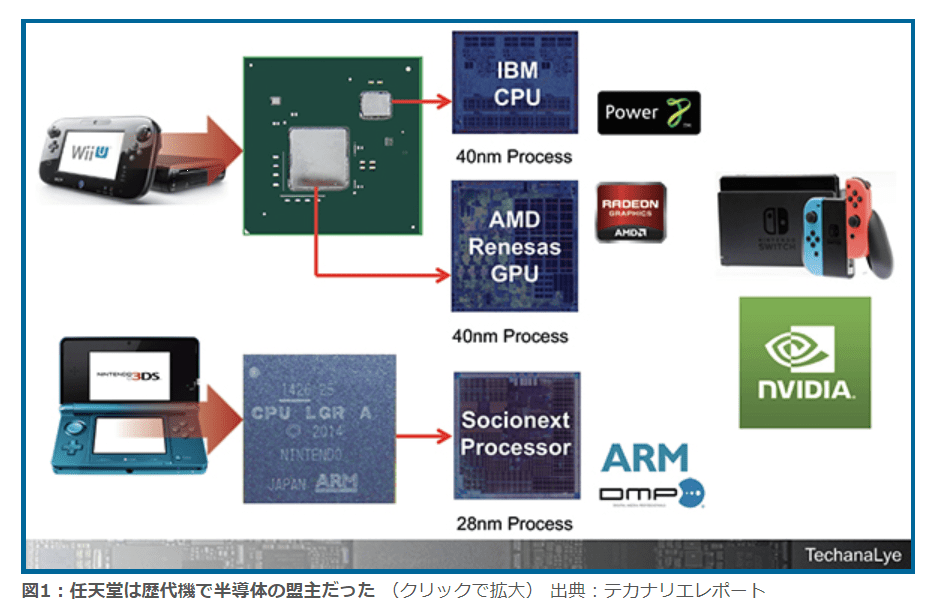 図1:任天堂は歴代機で半導体の盟主だった (クリックで拡大) 出典:テカナリエレポート