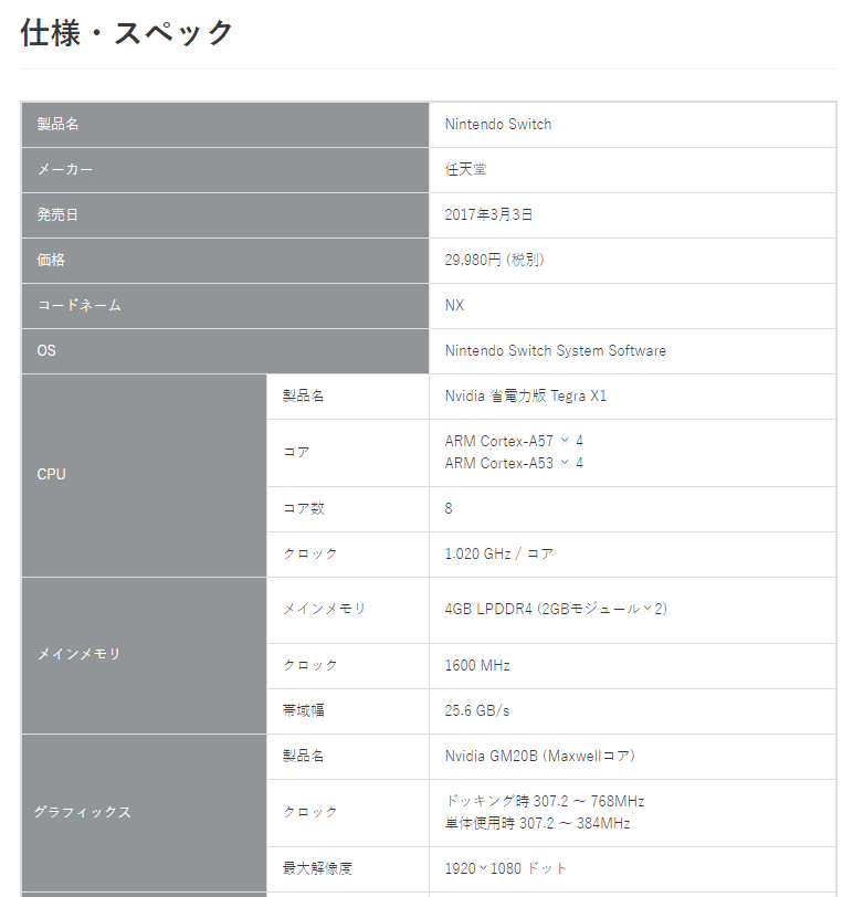 Nintendo Switch の凄いスペックまとめ