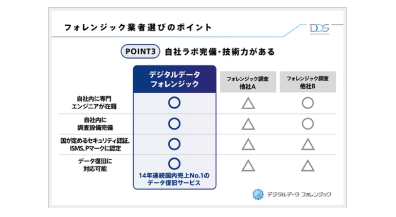 ここまで見てきたようなフォレンジック調査は、まだ新しい分野だけに、いざ自身が当事者となった場合に、どのような事業者を選んで良いのか、判断がつきにくいもの。しかし以下3つのポイントをしっかり守っておけば問題ない。