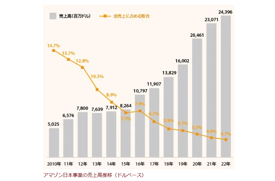 アマゾン日本事業の売上高推移 アマゾン日本事業の売上高推移(ドルベース)