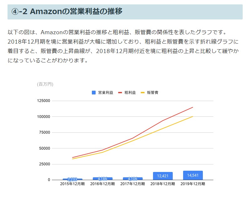 以下の図がAmazonの収益構造をグラフ化したものです。