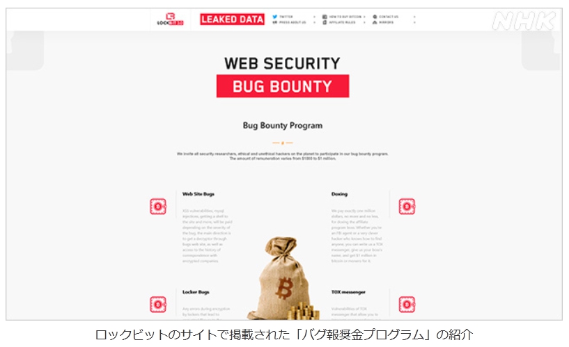 数年前には、エンジニアを悪の道に誘うサービスまで打ち出していました。世界中のIT技術者に対して、自分たち、ロックビットに関する「ぜい弱性」の情報を提供してくれれば、それを有償で買い取るというものでした。