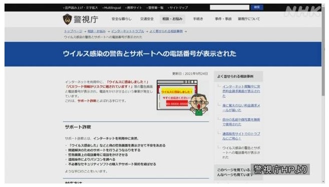 パソコンにうその警告 「サポート詐欺」容疑で初の逮捕 警視庁https://www3.nhk.or.jp/news/html/20220118/k10013435711000.html