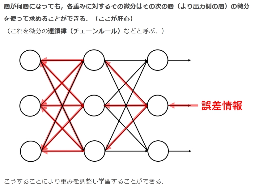その学習は誤差の情報を連鎖的に逆伝播し重みを調整することにより行われている.