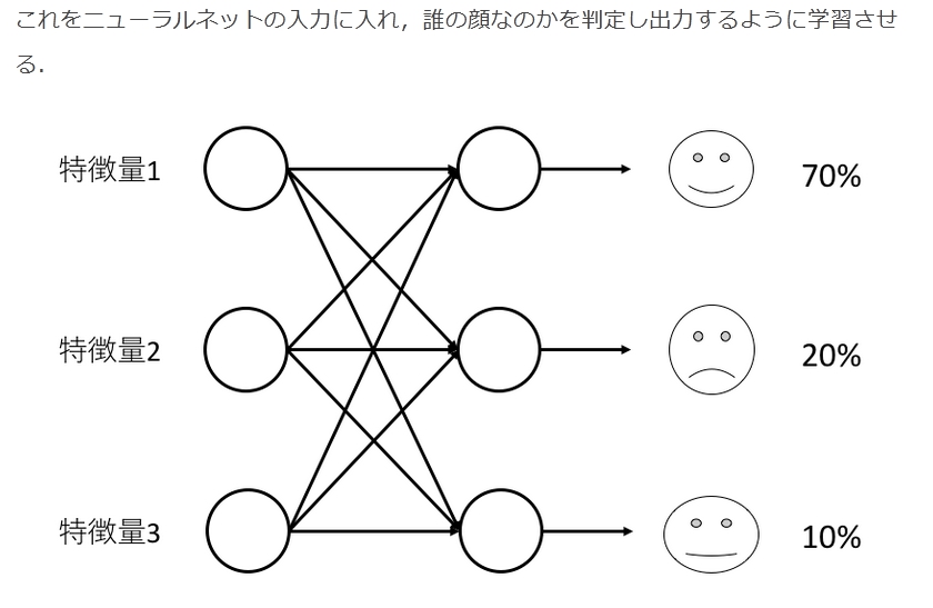 通常のニューラルネットでは数値しか用いることができないため,顔画像の特徴量というものを定義する必要がある.