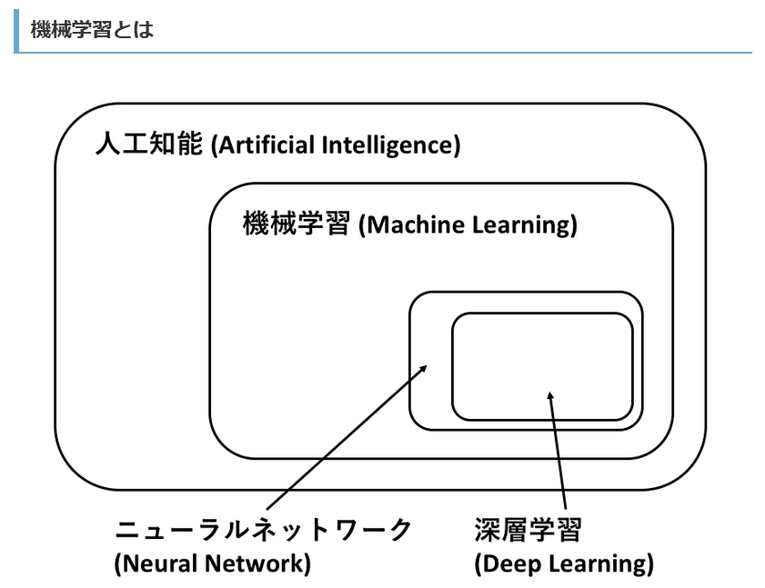 Machine Learning(マシンラーニング:機械学習)は,Artificial Intelligence(AI:人工知能)の一部である.