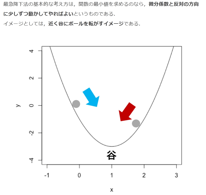 この場合,最急降下法の項で関数としていたものが誤差関数にあたり,変数としていたものが重みになる.