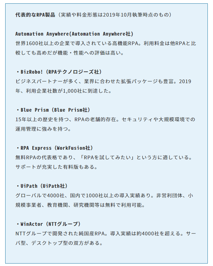このソフトウエアによる業務のブラックボックス化は、もう行き着く所にまで行き着いた感があったが、さらに「延長戦」があった。それが日本で一大ブームのRPAの導入である。RPAではご存じの通り、システムからデータを「コピペ」して他のシステムに入力するなどの作業を自動化するソフトウエアロボットを多数つくり出す。これによりパソコン画面の向こう側だけでなく、「こちら側」に残されていた業務までをブラックボックス化してしまうわけだ。