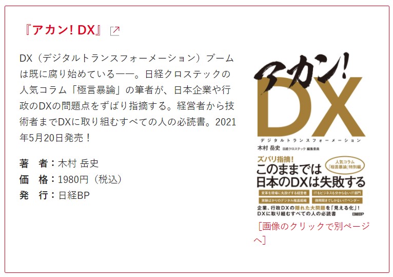 つまり、基幹系システムなどのソフトウエアが長年の改修作業でスパゲティ化して、改修を担当する技術者以外はプログラムコードを「解読」できなくなる現象である。そういえば、「2025年の崖」で有名になった経済産業省の「DXレポート」では、基幹系システムでのこのブラックボックス化を、企業のDXを阻む深刻な問題として取り上げていたな。