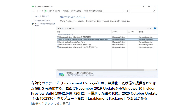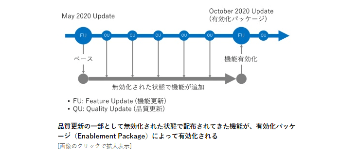 October 2020 Updateはパフォーマンスと品質の向上を目的としており、新機能の追加が限定され、パッケージサイズも軽量で高速にインストールできる。新機能を楽しみにしているユーザーには喜ばれない側面はあるが、移行を負担と考えているユーザーにおいては労力を軽減してくれる。