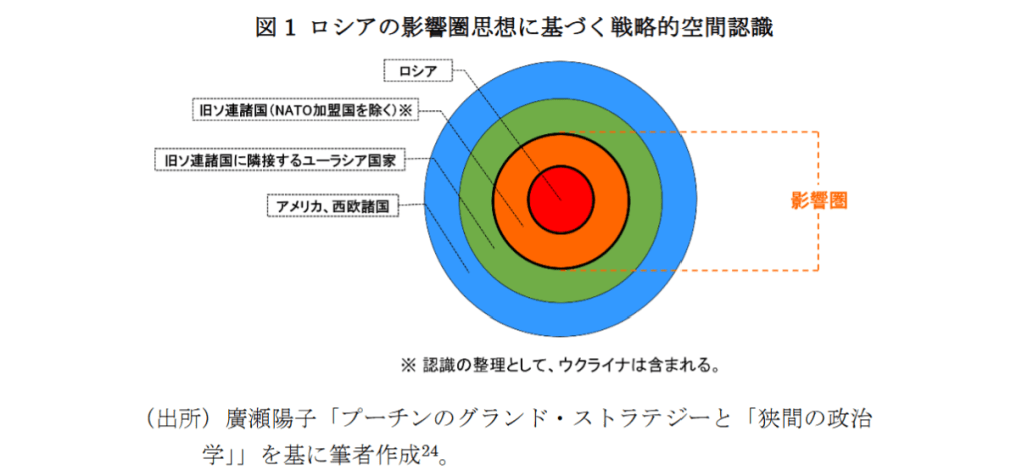 またロシアは、この包囲網に対する緩衝地帯を確保したいという時 11939年10月1日、チャーチル(Winston Churchill)がロンドンにて行ったス ピーチの内容である。 2 “IlyTiiH Ha3Baji flencTBHH Poccmh Ha YKpanHe BBiHyxneHHOH MepOH,” HHTep(j)aKC, February 24, 2022, https://www.interfax.ru/russia/824312 (Accessed on March 1,2022). 3 NATO HQ, “Press conference by NATO Secretary General Jens Stoltenberg following the extraordinary virtual summit of NATO Heads of State and Government,v February 25, 2022, https7/www.nato.int/cps/en/natohq/ opinions_192455.htm (Accessed on March 1,2022). 4グレン・カール「元CIAが分析するプーチンの心理と論理」『ニューズウィーク 日本版』2022年3月22日、18頁。グレンはNATOの不平等なリベラリズムに対 する、ロシア(プーチン)の「怒りのリアリズム」にウクライナ侵攻の原因を見 出している。 5小泉悠『軍事大国ロシア』作品社、2016年、74頁。 1 代錯誤な思想を固持している6。
