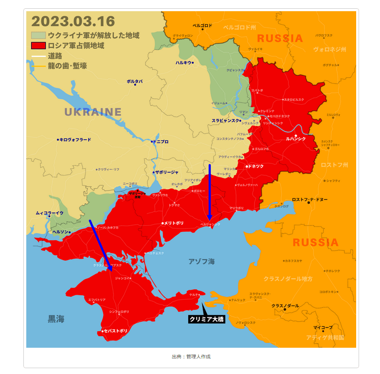 それ以前に、バフムトを陥落させたロシア軍が、マリンカやアウディイウカからの攻勢を本格化させて、万が一に突破でもした場合は、ザポロジェにウクライナ軍を集めても、逆に北東から突破したロシア軍に包囲されるような危険もあります。 13 』