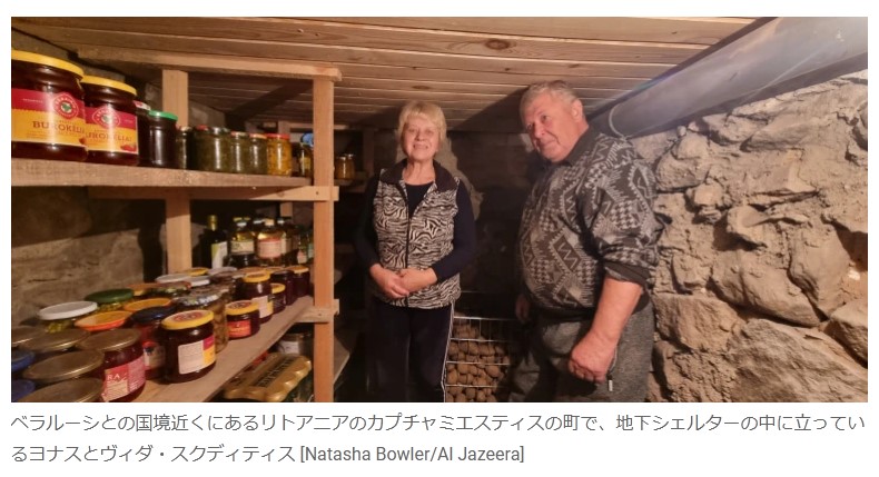 彼は、「戦争」が彼らの血の中にあり、彼と彼の妻はどんな緊急事態にも直面する準備ができていることを強調しました. 地下バンカー ベラルーシとの国境近くにあるリトアニアのカプチャミエスティスの町で、地下シェルターの中に立っているヨナスとヴィダ・スクディティス [Natasha Bowler/Al Jazeera]