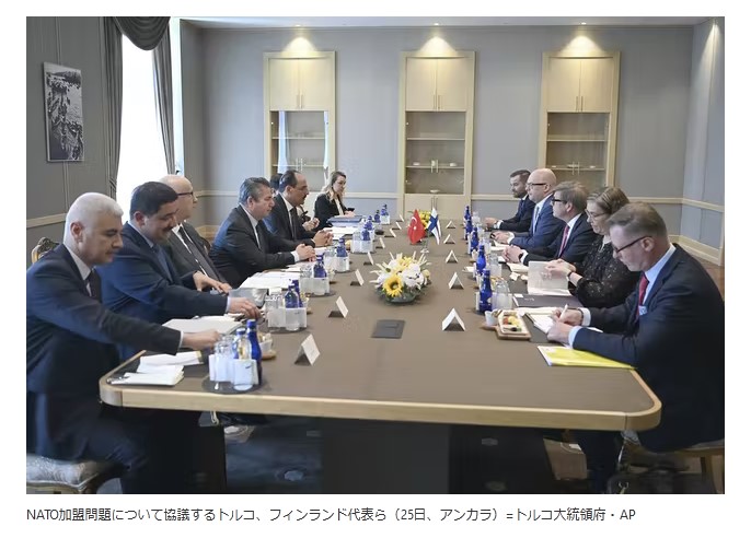 トルコは25日、アンカラでスウェーデンとフィンランドの交渉団と協議した後、両国のNATO加盟の是非をじっくり検討する方針を示した。トルコはまずは、YPGを「テロ組織」と認めるなどトルコ側の要求に対する北欧2カ国の「具体的な措置」を期待している。