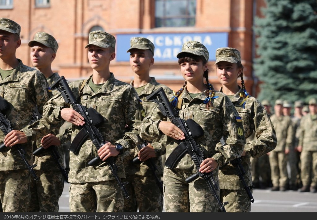 2018年8月のオデッサ陸軍士官学校でのパレード。ウクライナ国防省による写真。