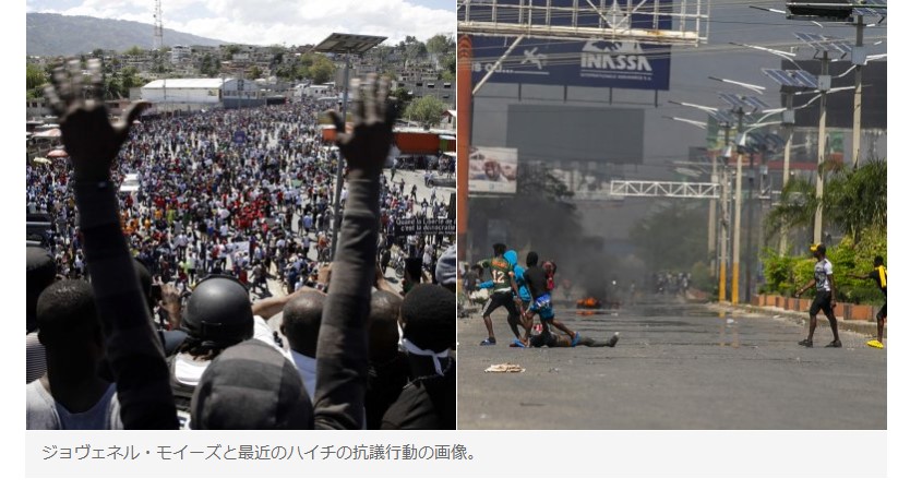 https://www.nikkei.com/article/DGXZQOCB07C6F0X00C21A7000000/『【サンパウロ=共同】カリブ海のハイチからの報道によると、同国のモイーズ大統領が7日未明、首都ポルトープランス近郊の自宅に押し入った武装集団に暗殺された。ジョゼフ暫定首相が発表した。