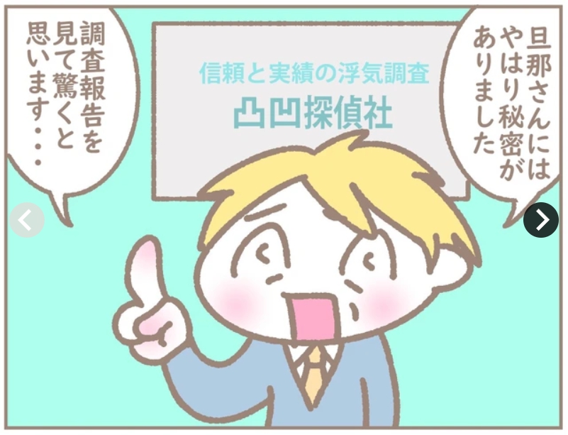 (オタクを隠していたので推し入れを購入した)などから浮気を疑われてたらしく、興信所に妻が依頼を掛けたみたいです