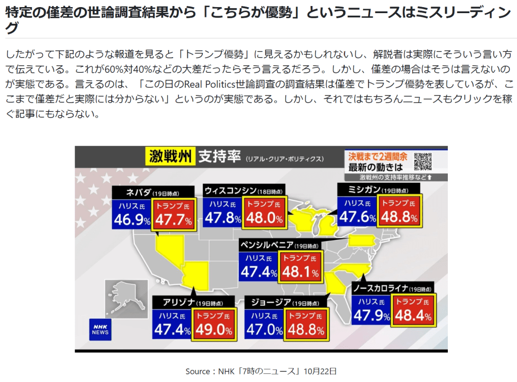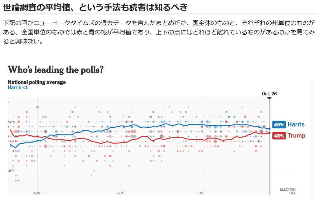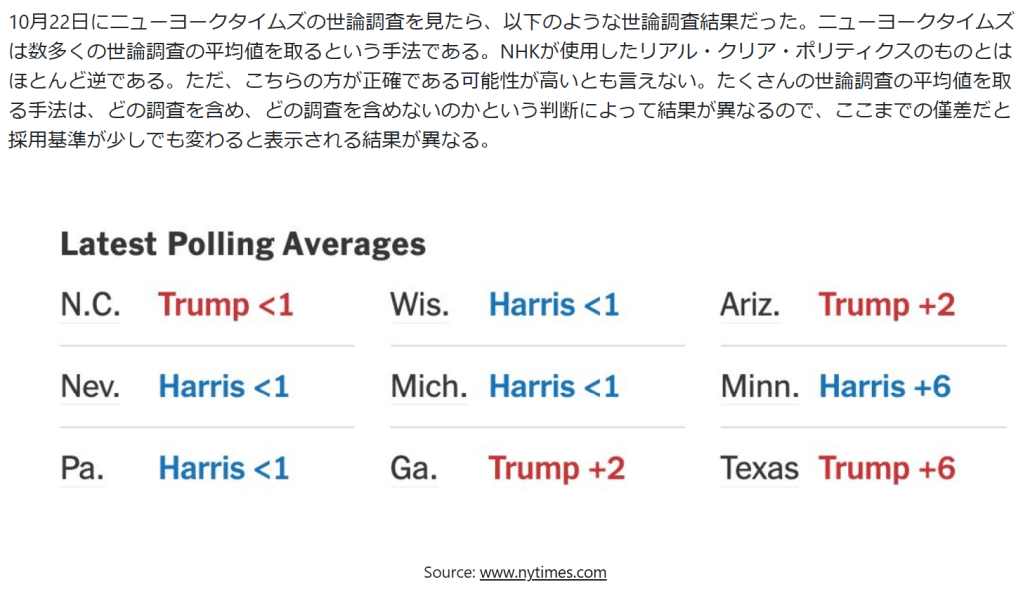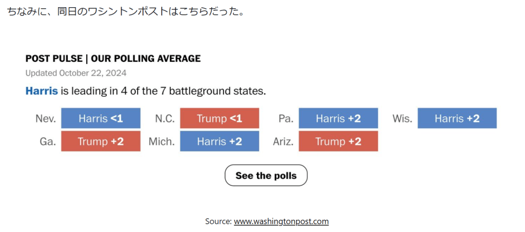 果たして、こうしたハリス陣営の最後の切り札ともいうべき作戦が期待通りの成果につながるかどうかは、誰にも分らない。』